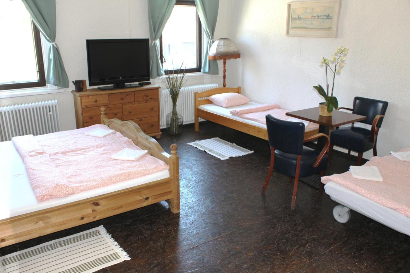 Standard Triple Room. A shared bathroom is located in the hallway. ;