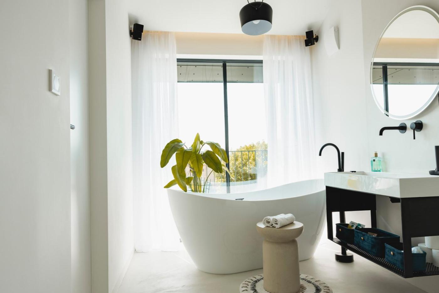One-Bedroom Apartment. The air-conditioned apartment features 1 bedroom and 1 bathroom with a walk-in shower and a bath. Meals can be prepared in the kitchen, which comes with a stovetop, a refrigerator, a dishwasher and kitchenware. Featuring a terrace with garden views, this apartment also provides a washing machine and a flat-screen TV with streaming services. The unit offers 1 bed.