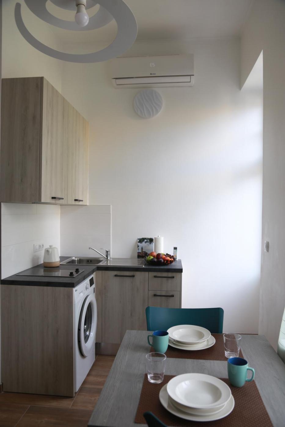 One-Bedroom Apartment. The air-conditioned apartment features 1 bedroom and 1 bathroom with a shower and a hairdryer. In the well-fitted kitchen, guests will find a stovetop, a refrigerator, kitchenware and an oven. The apartment offers a flat-screen TV, a washing machine, a tea and coffee maker, a wardrobe as well as garden views. The unit offers 1 bed.